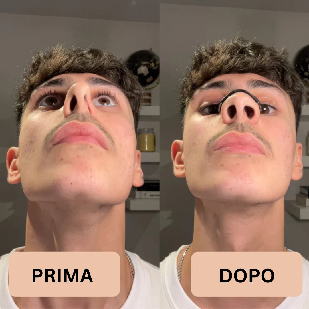Pulisci e asciuga la zona del naso, poi posiziona il patch magnetico in pochi secondi.