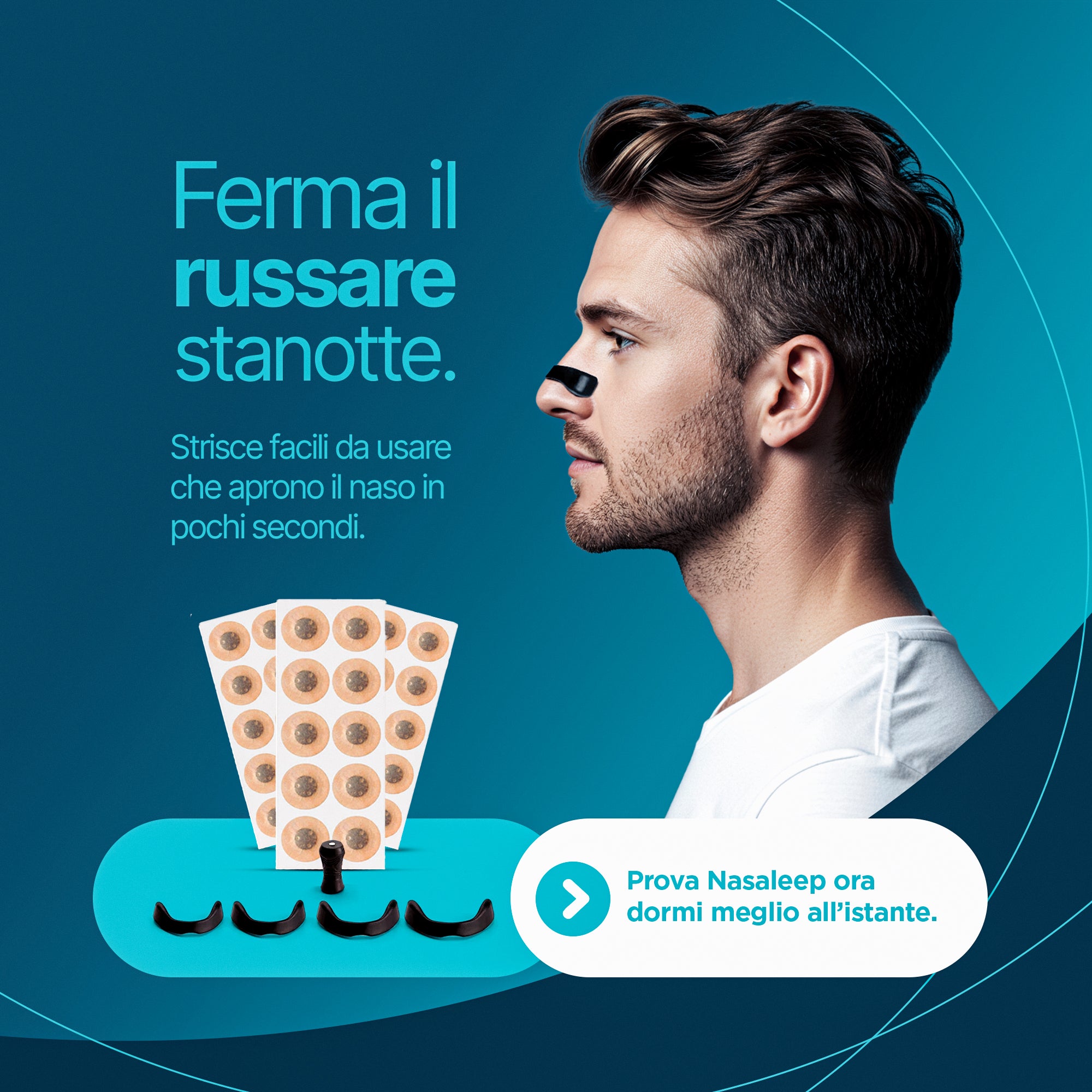 Con Nasaleep™ bastano pochi secondi per applicarlo e puoi finalmente dormire sereno, svegliarti con più energia e affrontare la giornata al massimo.