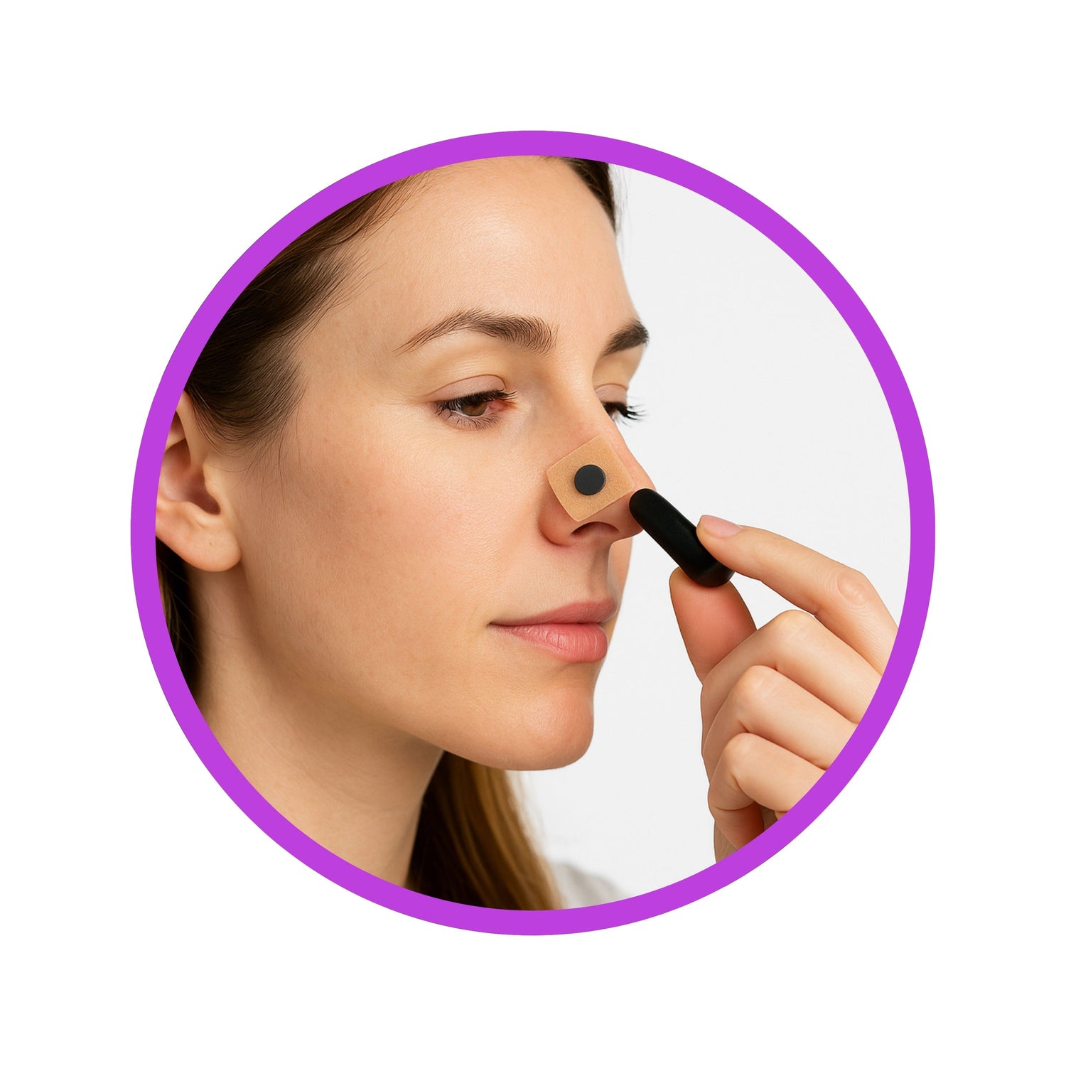 I patch nasali magnetici Nasaleep™ utilizzano la combinazione di micro-magneti posizionati strategicamente e di un adesivo ipoallergenico ultra-sottile per favorire un respiro naturale e libero. Una volta applicati sul naso, i magneti generano un delicato campo che stimola i punti nasali e aiuta ad aprire i passaggi respiratori, migliorando il flusso d’aria in pochi minuti.